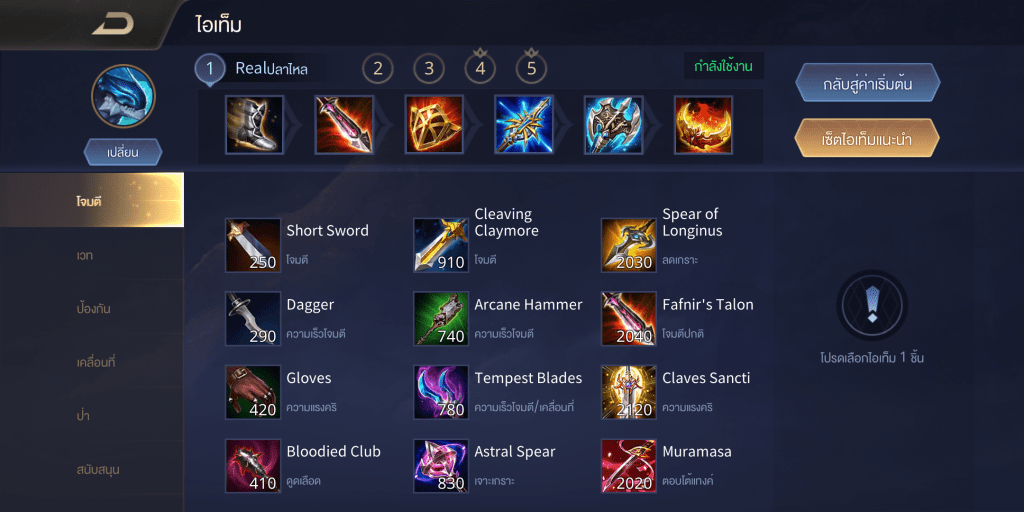 สำหรับการ Build Item จะ Build มาแนวในการตีเร็วและการยืนไฟต์ โดย Item จะออกมาประมาณนี้