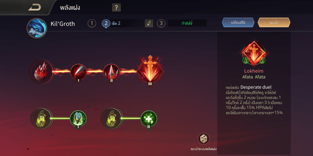 โจมตีปกติครั้งที่ 3 จะสร้างโบนัสความเสียหายเวท 75 (+ 25 Bonus AD) (เอฟเฟกจะหายไปเมื่อสกิลนี้ถูกสั่งใช้งาน) เมื่อใช้สกิล : Kil’Groth เพิ่มพลังใส่หอกของเขาจากนั้นภายใน 4 วิการโจมตีปกติจะสร้างความเสียหายเวท เพิ่ม 75 (+ 25% Bonus AD) และฟื้นฟู HP 50 (+120% Bonus AD) หน่วย (หากโจมตีโดนฮีโร่จะ ฟื้นฟูเพิ่มขึ้น 15%)